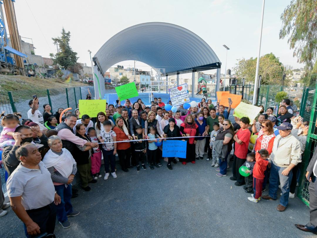 “Aquí no importan colores partidistas, aquí tenemos que avanzar y transitar, y hoy es grato ver como un polvorín donde antes veníamos a entregar cobijas y tinacos, lo convertimos en algo digno de las y los vecinos de La Lumbrera, este deportivo que es un lugar de esparcimiento para que las familias lo hagan suyo”, afirmó el Presidente Municipal.