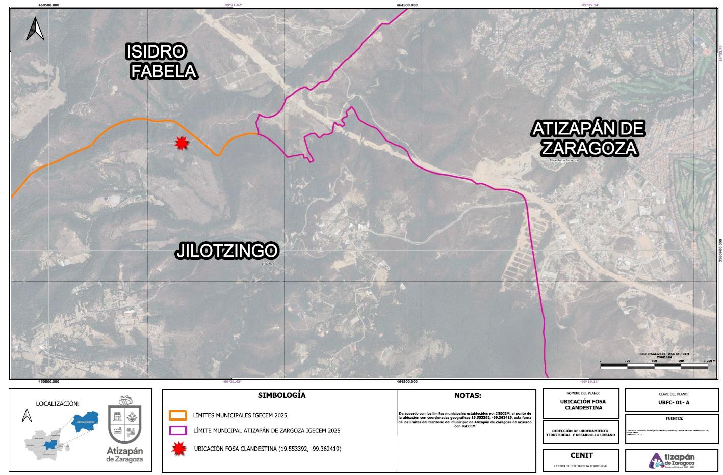 En relación al comunicado sobre la fosa clandestina encontrada en Jilotzingo, el Gobierno de Atizapán de Zaragoza informa qué, respecto a los referentes geográficos y reportes oficiales, el punto de hallazgo no se encuentra dentro de su territorio municipal, sino a 700 metros lineales respecto al límite territorial con Jilotzingo.