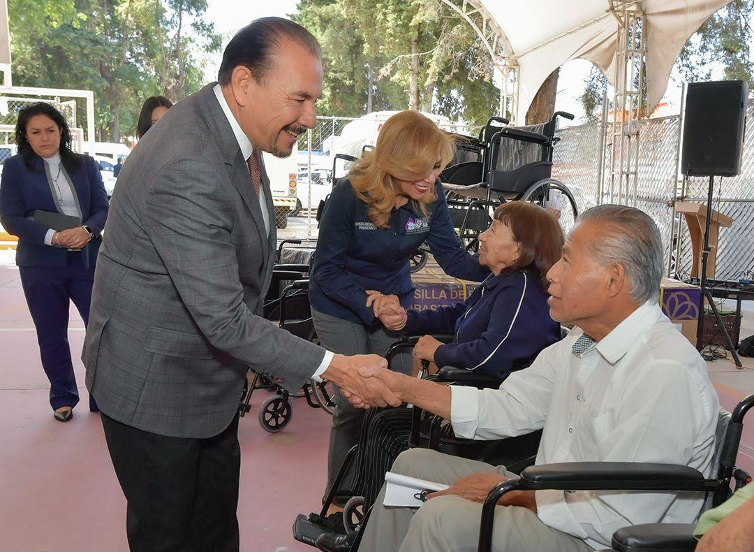 Esta acción es resultado de políticas públicas oportunas y de la cercanía de la Presidenta Honoraria del DIF, Paty Arévalo, con la población que más lo necesita. Gracias a la buena gestión del DIF y al compromiso de ciudadanos solidarios con la salud y las necesidades de la comunidad, en esta ocasión se realizó la donación de 100 sillas de ruedas al SMDIF por parte del Lic. Mario Arturo Gómez Rodríguez, quien felicitó la labor del Presidente Municipal, Pedro Rodríguez Villegas, y de la Presidenta Honoraria del DIF, Paty Arévalo.